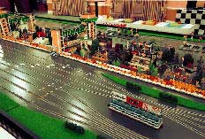System Measuring 24 ft x 10ft. The eight lanes recreate all the thrills and spills ofScalextric formula 1 racing, using miniature replicas of the real thing. The automatic lap counters guarantee the success of organised racing events.